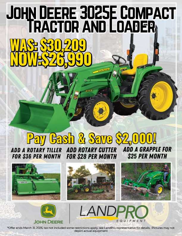 *Offer ends March 31, 2026, tax not included some restrictions apply, see LandPro representative for details. Pictures may not depict actual equipment
