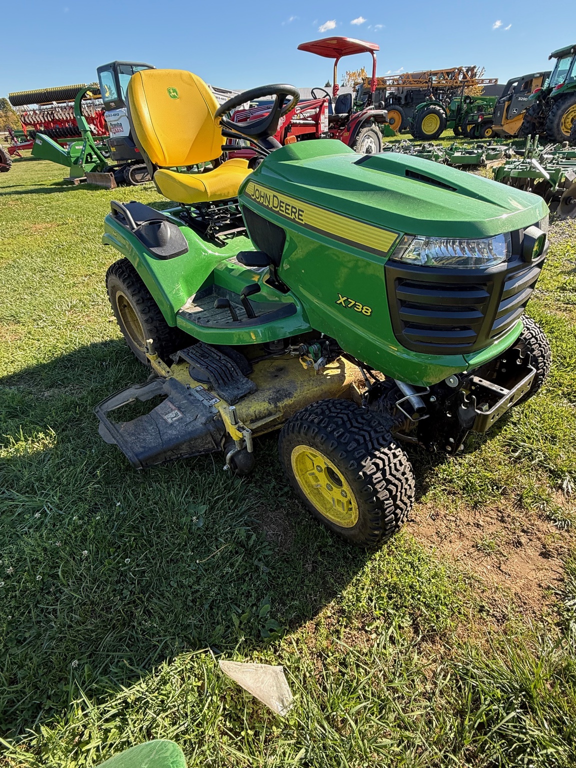 - 2021 John Deere X738 complete with 54" mower deck and 113 hours. Great, affordable used mower for less than $15,000. Financing available on all pre-owned equipment, trade ins welcome!