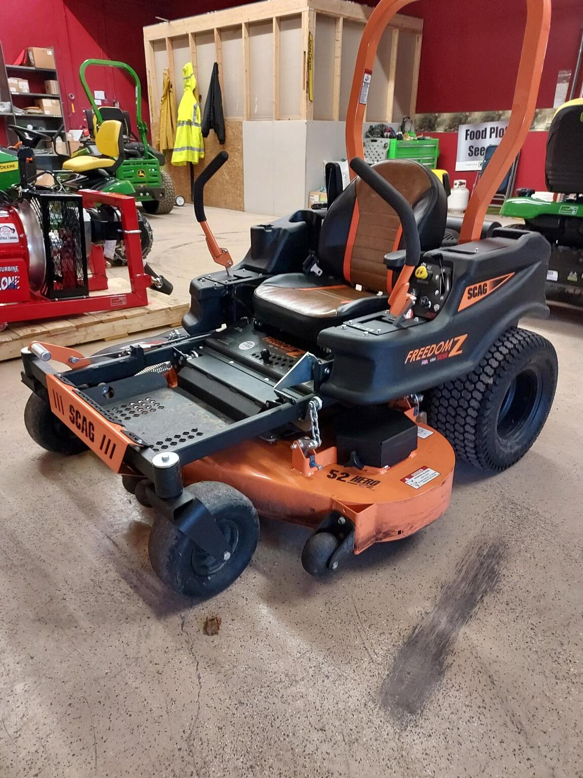 - 2022 Scag SFZ-52H-26KT complete with 52" mower deck and 75 hours. Great, affordable used mower for less than $5,000. Financing available on all pre-owned equipment, trade ins welcome!