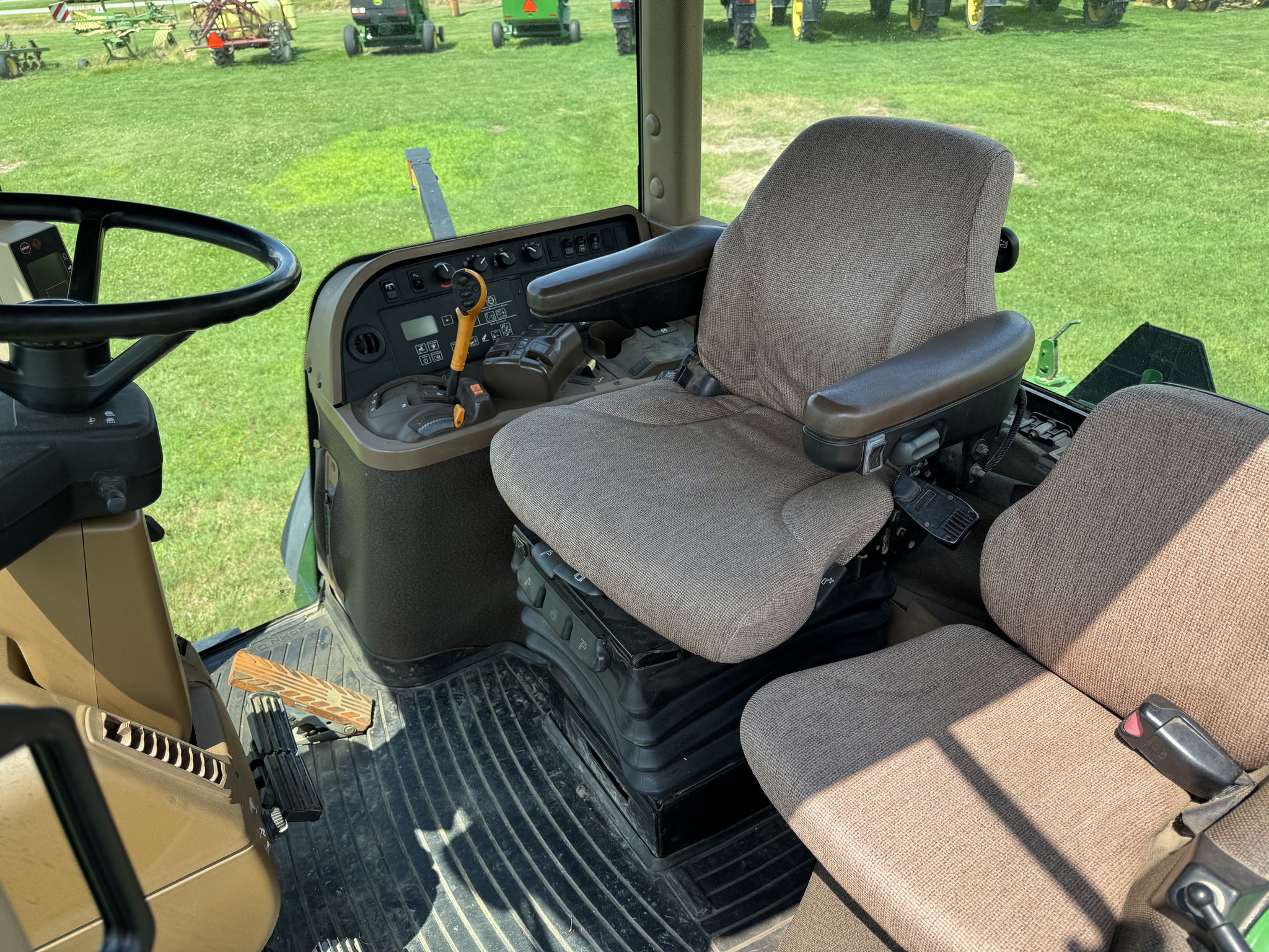 - Inside, you'll find a Deluxe CommandView™ cab designed for comfort and visibility. It includes an instructional seat, perfect for training or ride-along use, and GS AutoTrac with Plug & Play capability, making it ready for precision farming right out of the gate.